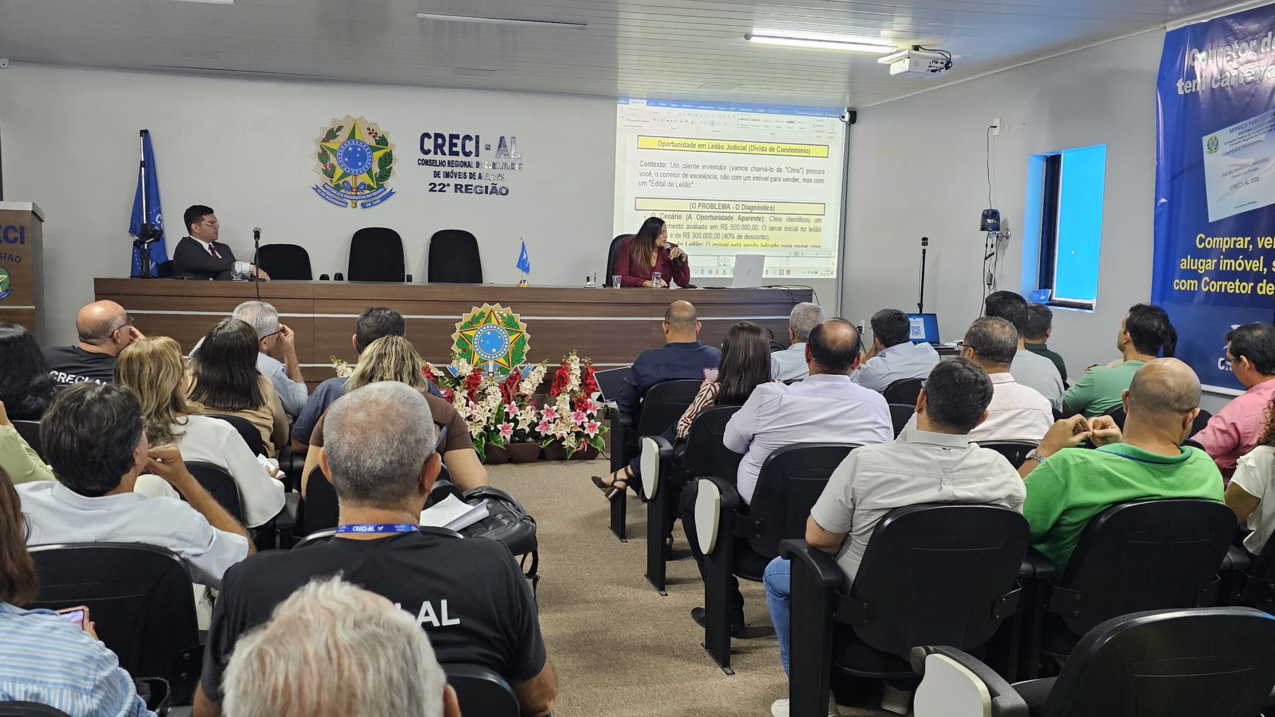 A palestra “Estratégia Jurídica do Corretor de Excelência” foi o tema central de um evento promovido pelo CRECI-AL nesta terça-feira (28). O objetivo foi prevenir riscos legais e aprimorar a atuação profissional dos corretores, focando no desenvolvimento profissional através da capacitação e atualização em ferramentas de blindagem para transações cotidianas.